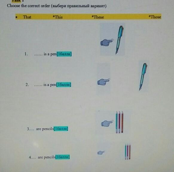 1. This is a pen. 2. That is a pen. 3. These are pencils. 4. Those are pencils.