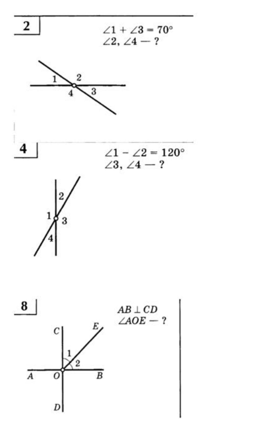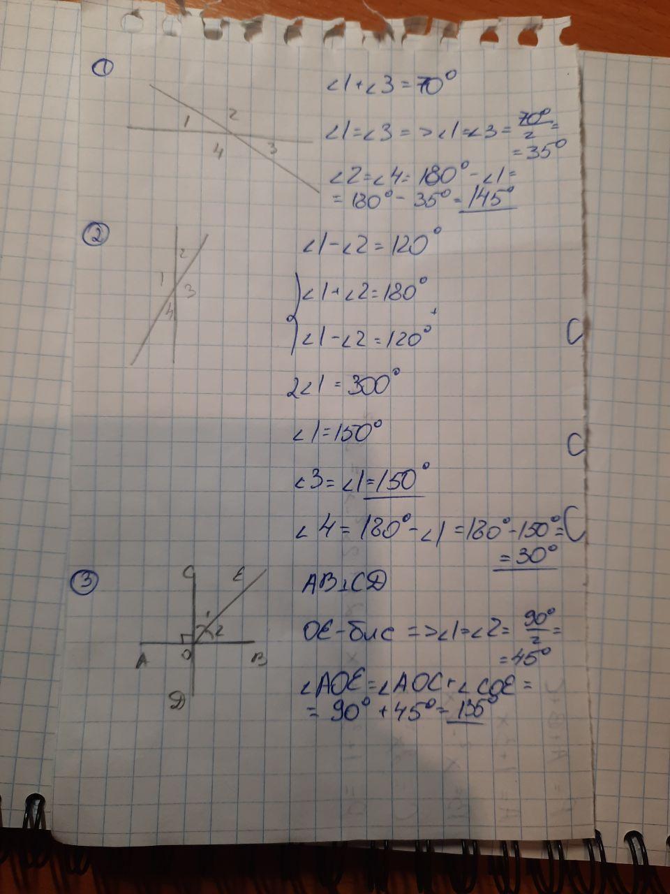 4) угол 1 + угол 2= 180, т. к. они смежные, угол 2= 180-120=60, угол 1= 180-60 =120, угол 1 равен углу 3, а угол 2= углу 4, так как они вертикальные