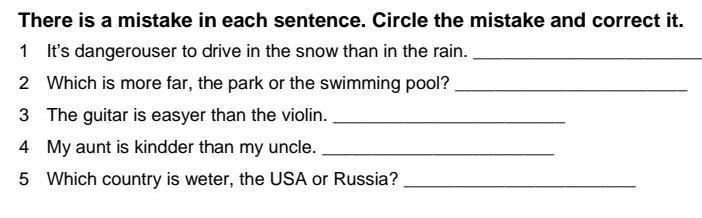 4) ошибка в слове kinder.My aunt is kinder than my uncle.