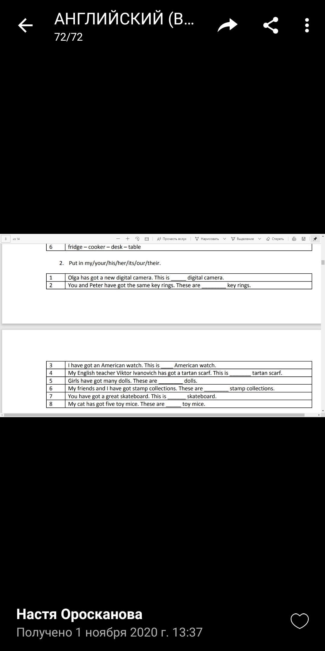 1. Her 2. Your 3. My 4. His 5. Their 6. Our 7. Your 8. Its