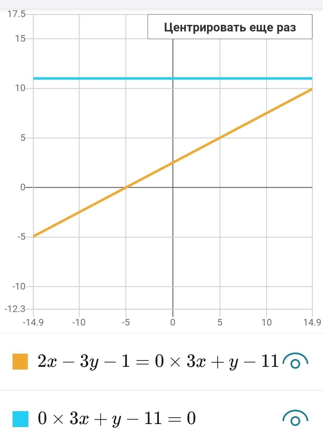 2 x - 3 y - 1 = 03 x + y - 11 = 0