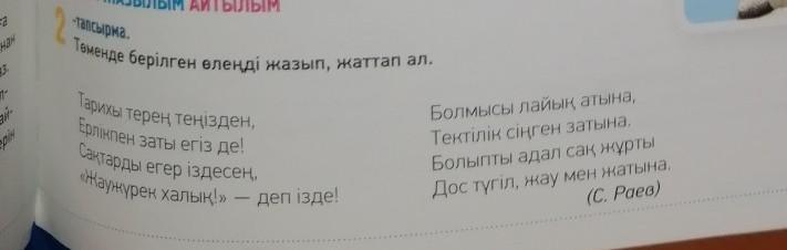 83 бет, 2- тапсырма. Төменде берілген өлең жолдарын діптерге жазып, жаттап алыңыз. Сын есмідерді асытн сызыңыз