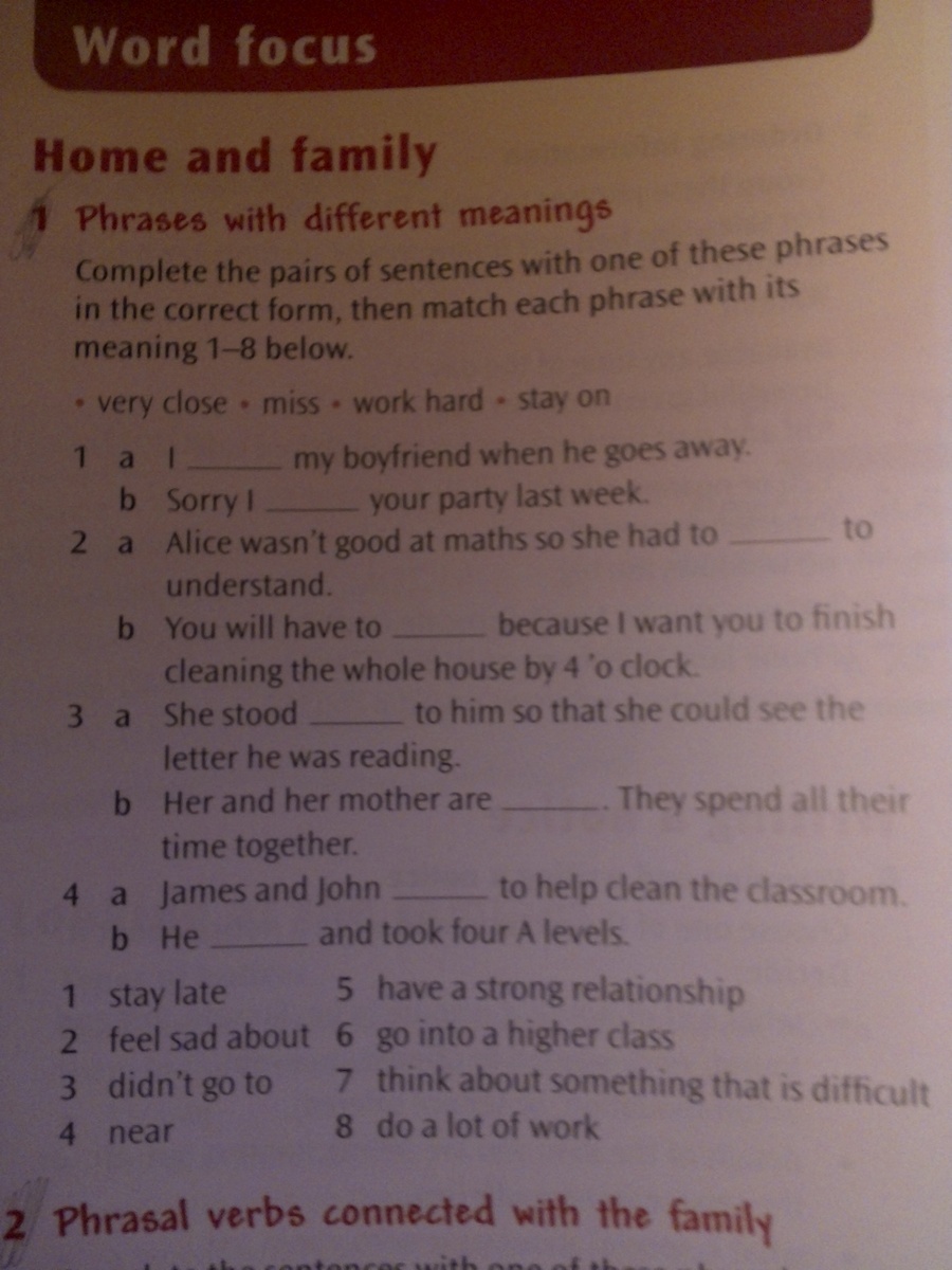 1a miss (2) b missed (3), 2 a work hard (7), b work hard