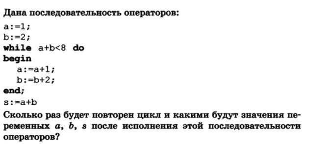пока условие a + b < 8 истинно выполнить действия в цикле: