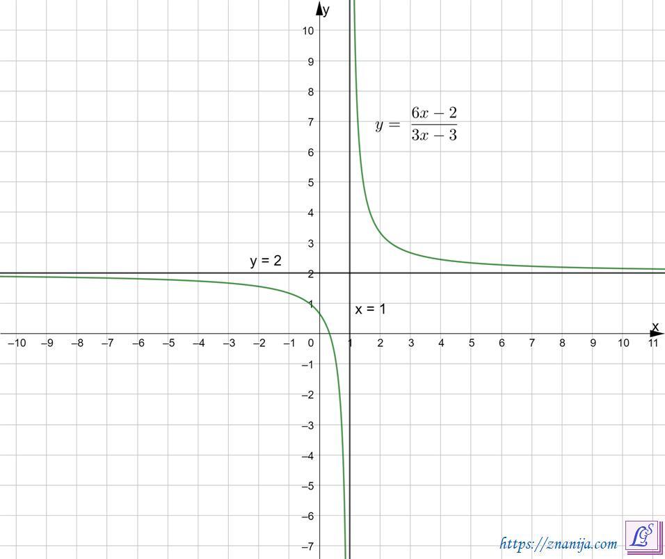 Прямые x=1 и y=2, являются асимптотами дробно-линейной функции y=(ax-2)/(3x+d)