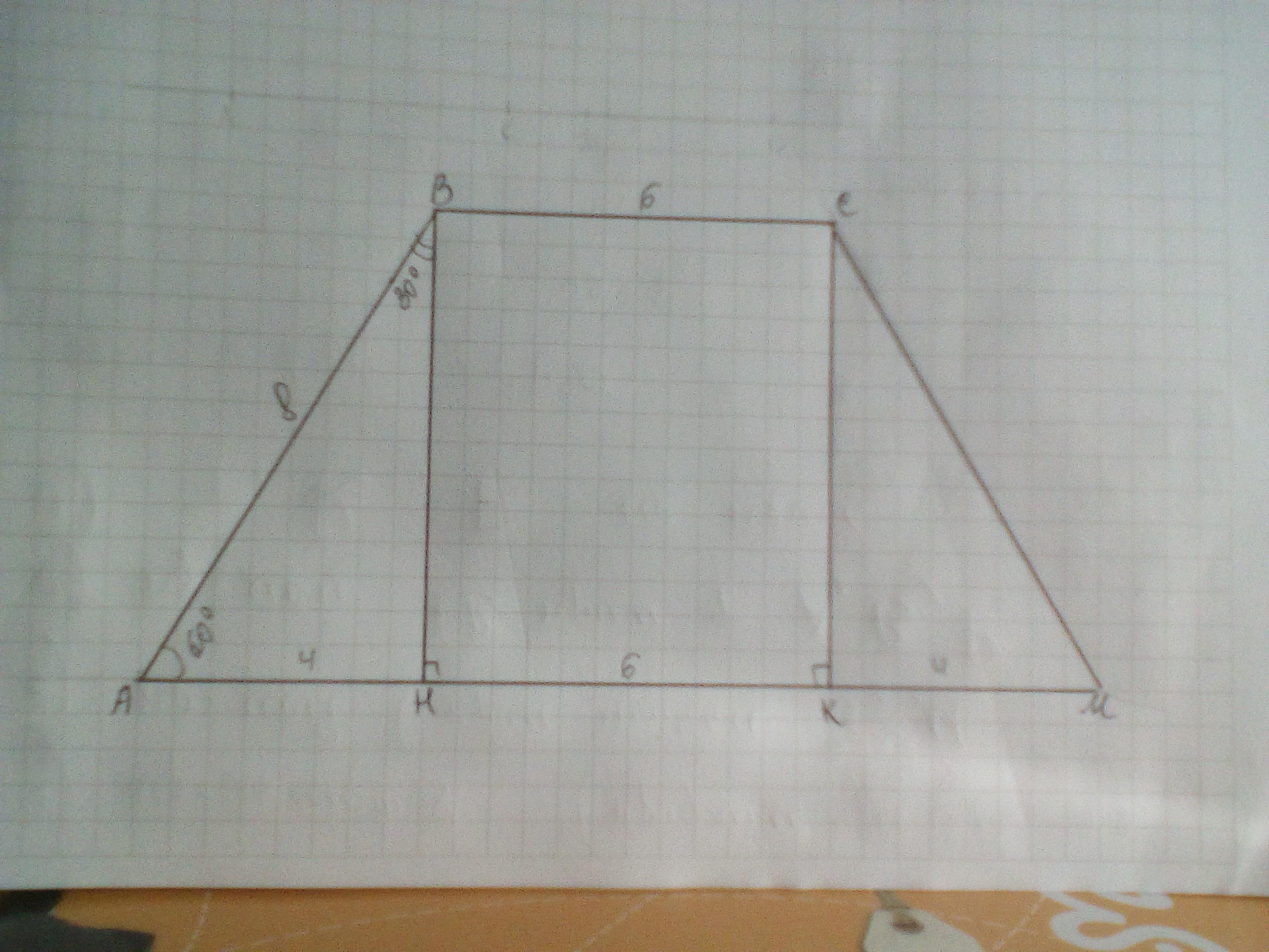 Дано: АВСМ - трапеция, АВ=СМ=8 см; ∠А=∠М=60°. Найти Р(АВСМ).