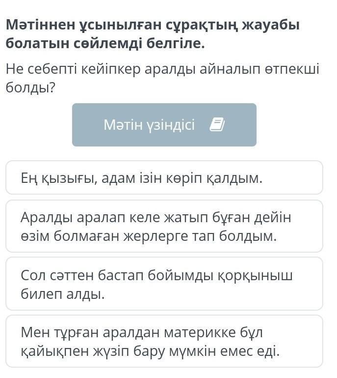 Мәтіннен ұсынылған сұрақтың жауабы болатын сөйлемді белгіле.