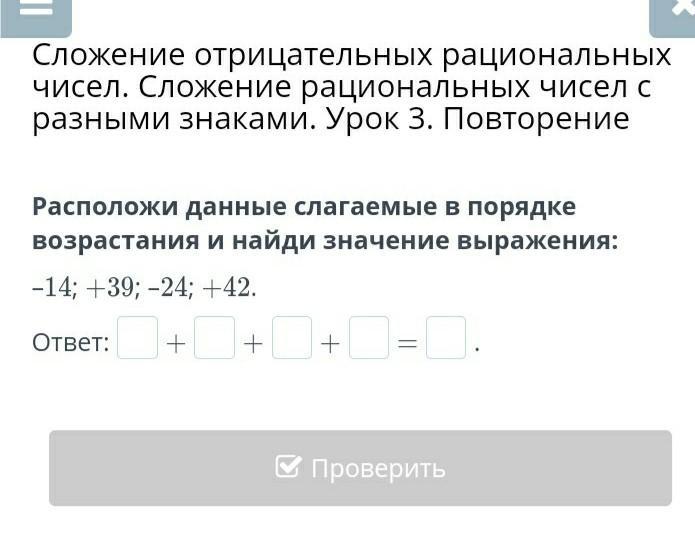 Расположи данные слагаемые в порядке возрастания и найди значение выражения:
