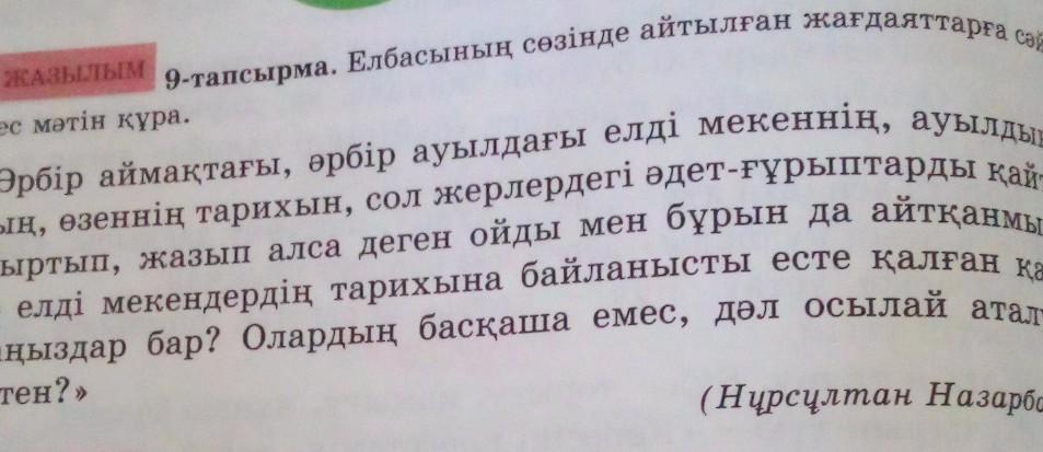 Біздің ел басымыз дұрыс айтады.Оның əр сөзі мағыналы,əрі дұрыс.Мен ел басымызбен келісемін.Оның ойы дұрыс деп ойлаймын.