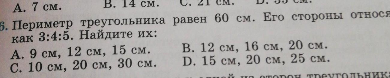 С. 10 см, 20 см, 30 см. D. 15 см, 20 см, 25 см.