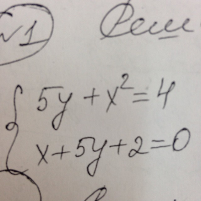 { 5у+х^2=4, x+5y+2=0