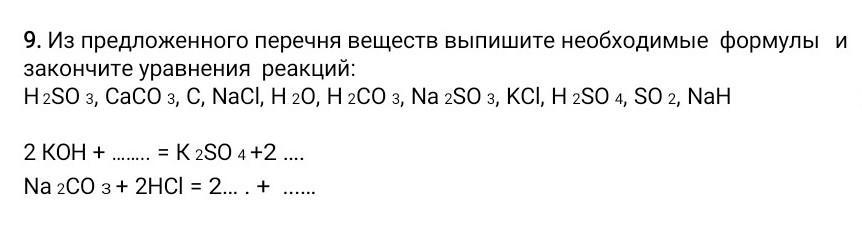 Из предложенного перечня веществ выпишите необходимые формулы и закончите уравнения реакций: