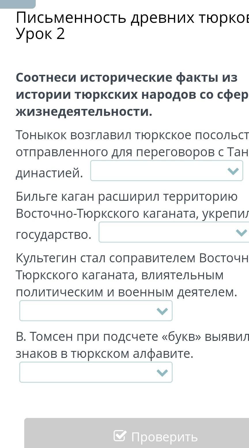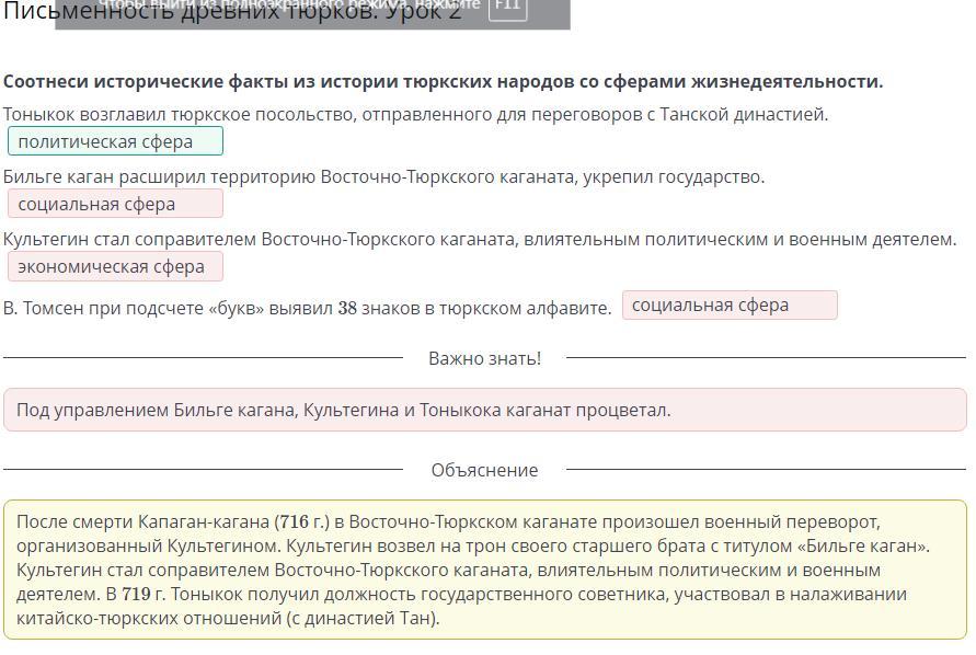 Соотнеси исторические факты из истории тюркских народов со сферами жизнедеятельности.