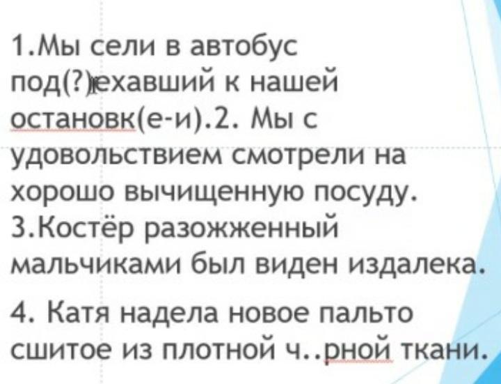 4. Катя надела новое пальто, сшитое из плотной, чёрной ткани - причастный оборот - Катя надела новое пальто
