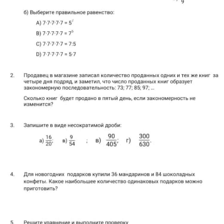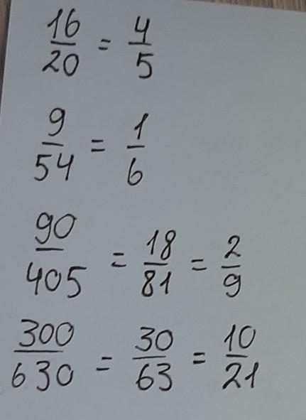 запишите в виде несократимой дроби 16/20 , 9/54, 90/405, 300/630