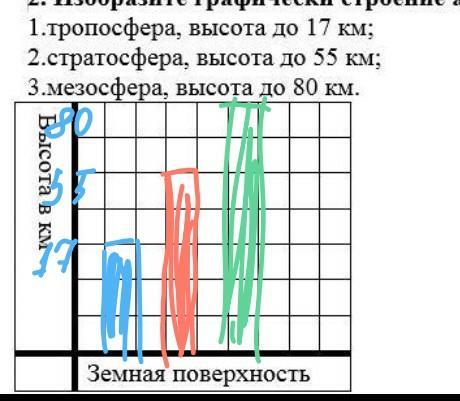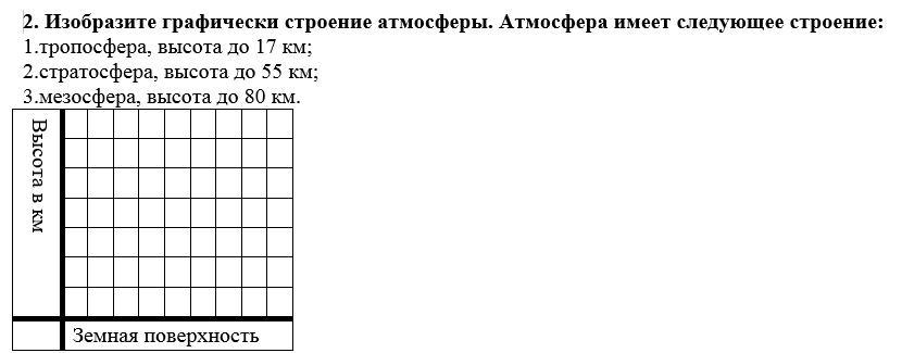 2. Изобразите графически строение атмосферы. Атмосфера имеет следующее строение: