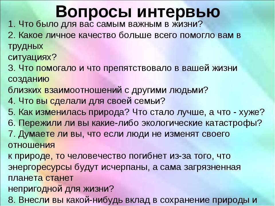 Составь с другом десять интересных вопросов для интервью по