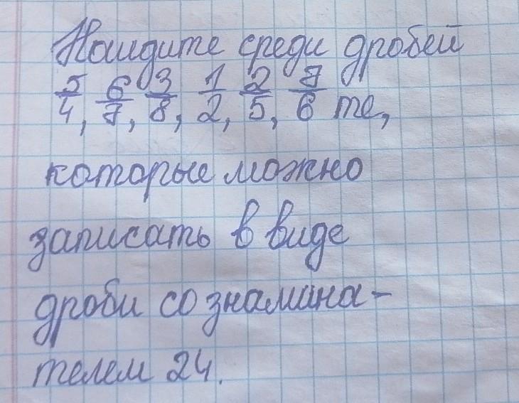 6/7, 2/5 нельзя записать со знаменателем 24, потому что число 24 нельзя нацело разделить на 7 и 5( знаменатели этих дробей)