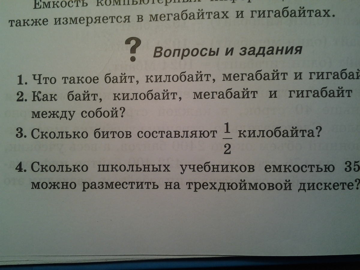 4. Размер трехдюймовой дискеты - 1,44 Мбайт4 документа (учебника)