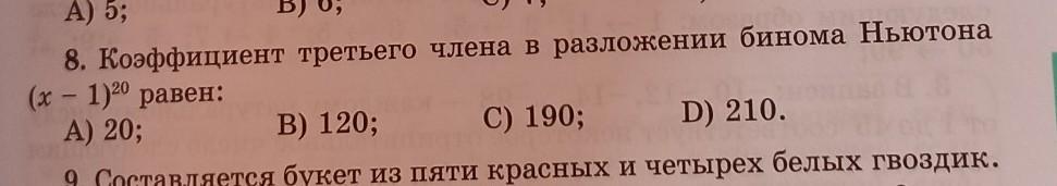 8. Коэффициент третьего члена в разложении бинома Ньютона