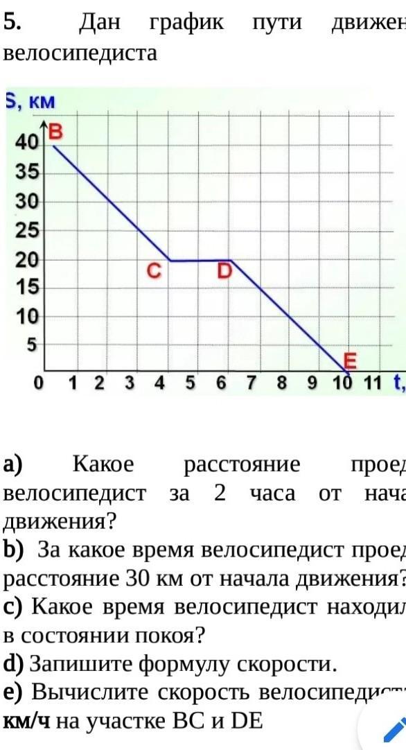 d-е). Скорость велосипедиста в процессе движения на участке ВС: