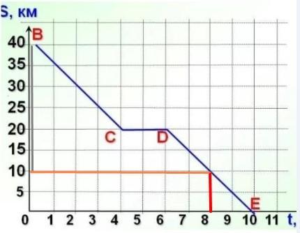 v(cp.) = S : t = 40 : 10 = 4 (км/ч)