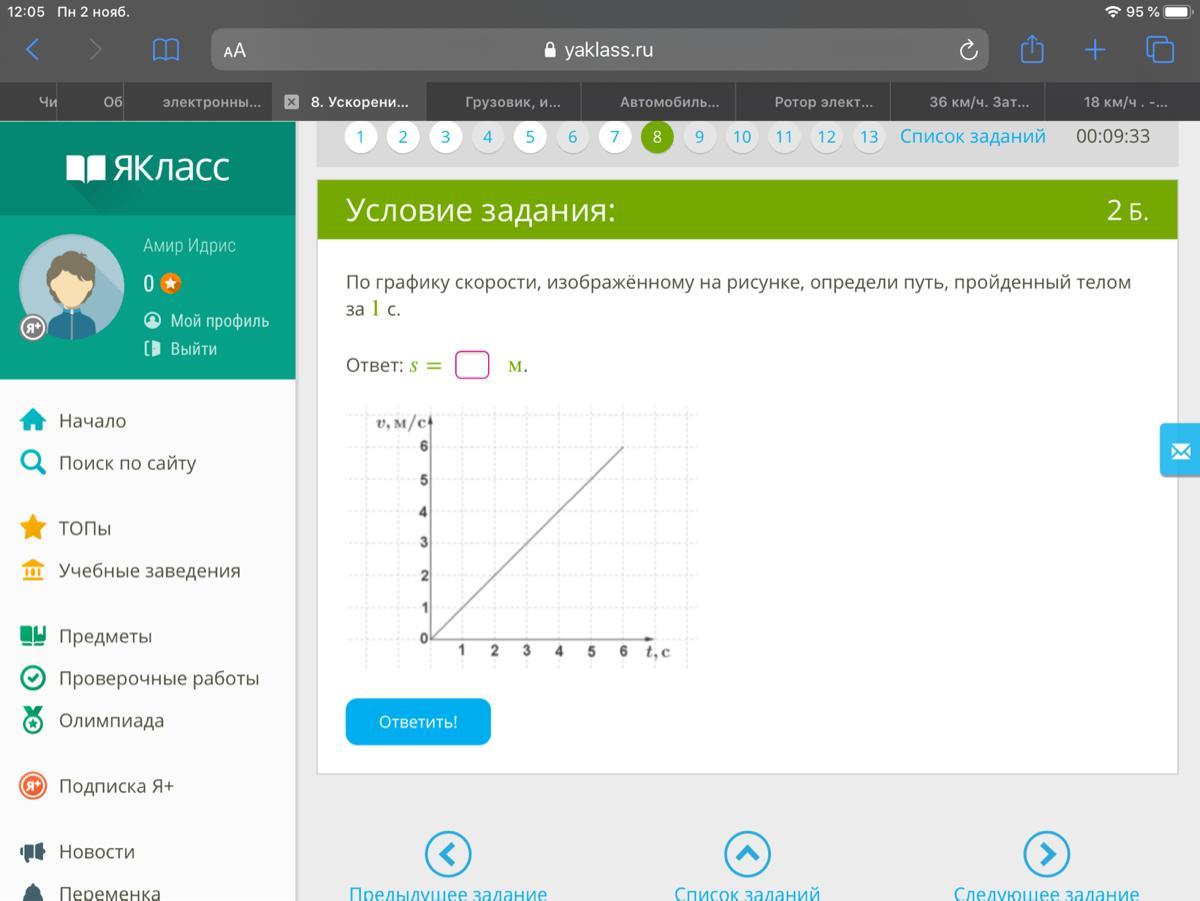 v=6/6=1 м/с
