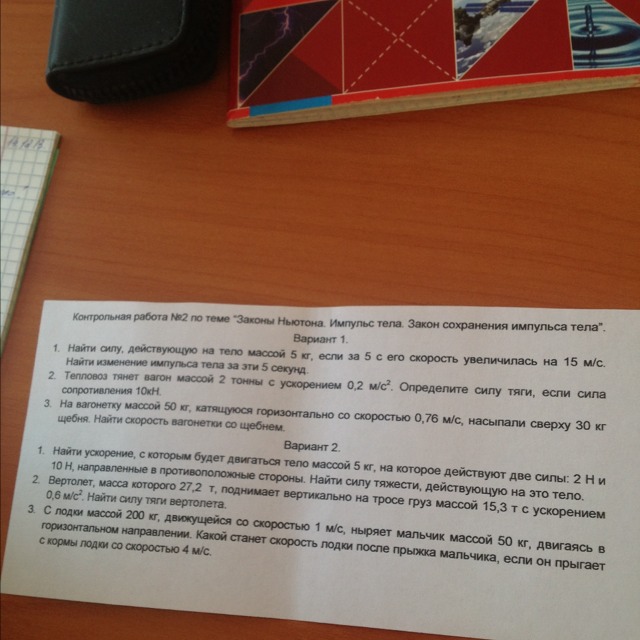 1) F=ma=m*дельтаV/t=5*15/5=15[H]