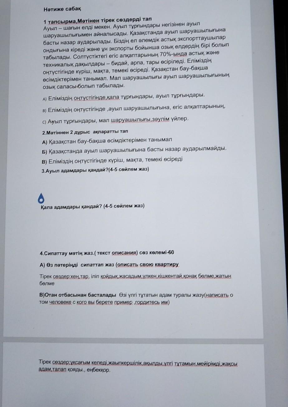 3.Ауыл адамдары қандай?(4-5 сөйлем жаз)