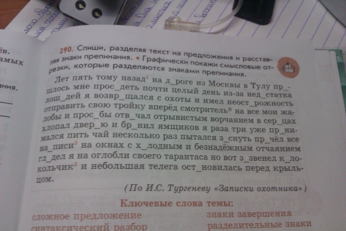 Лет пять тому назад,на дороге из Москвы в Тулу,прИшлось мне просИдеть почти целый день из-за недостатка лошадей.Я возврАщался с охоты и имел неостОрожность отправить свою тройку вперед. Смотритель, на все мои жалобы и просьбы, отвечал отрывистым ворчанием, в сердцах хлопал дверЬю и брАнил ямщиков. Я раза три уже прИнимался пить чай ,несколько раз пытался заснуть,прочел все надписи на окнах, с холодным и безнадежным отчаянием глядел я на оглобли своего тарантаса, но вот зАзвенел кОлокольчик и небольшая телега остановилась перед крыльцом
