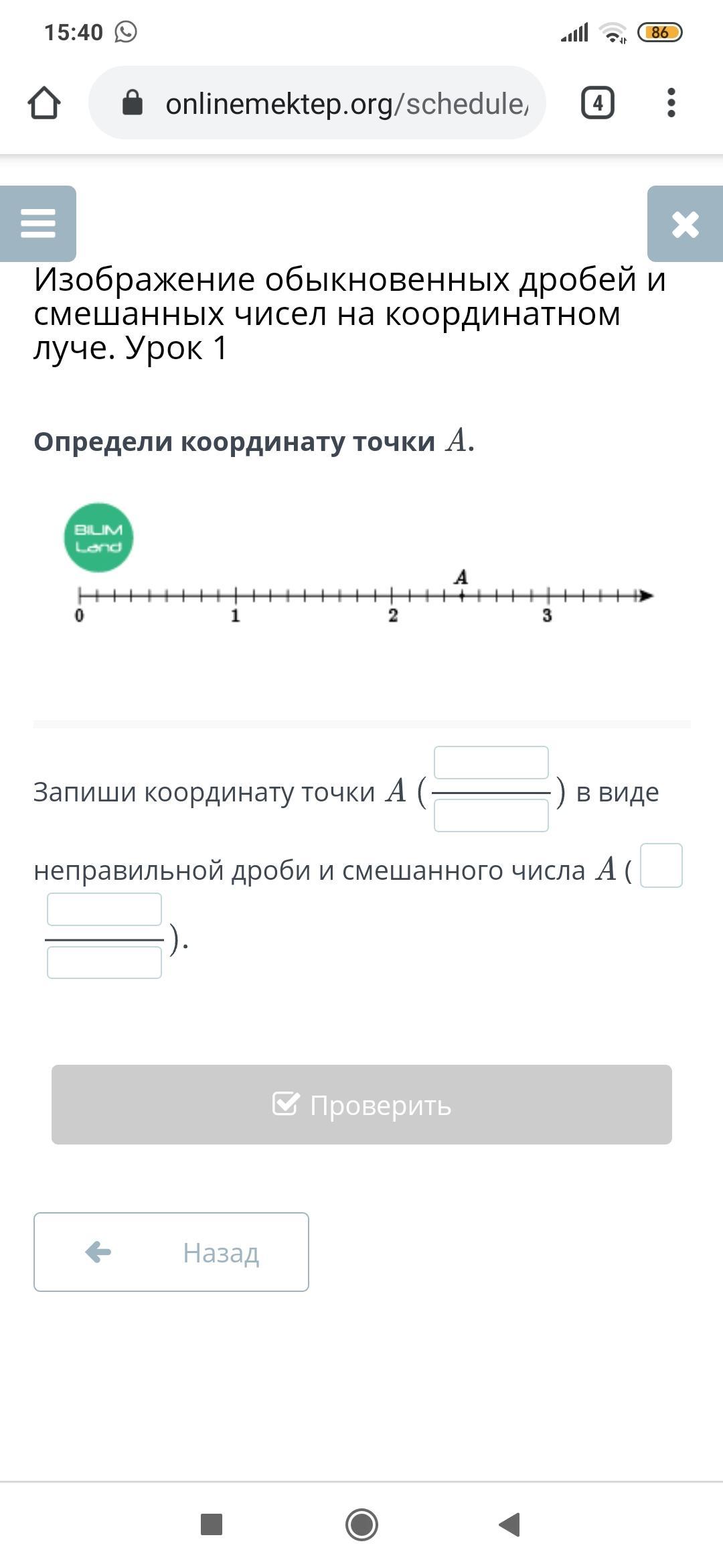 запишите координату точки А