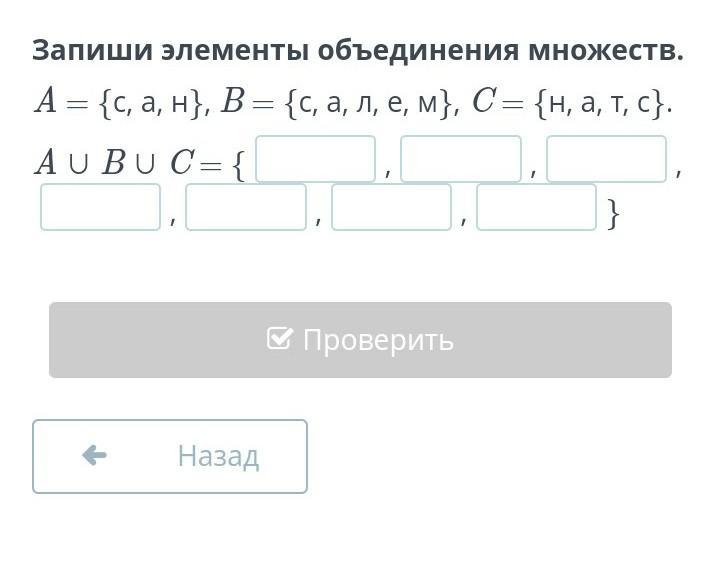 Запиши элементы объединения множеств.