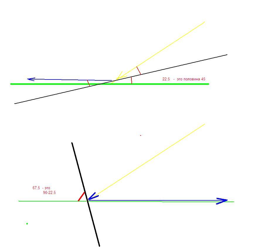 як треба розташувати плоске дзеркало щоб змінити напрям змінити напрям сонячного променя на горизонтальний,якщо сонячні промені падають на землю під кутом 45 градусів