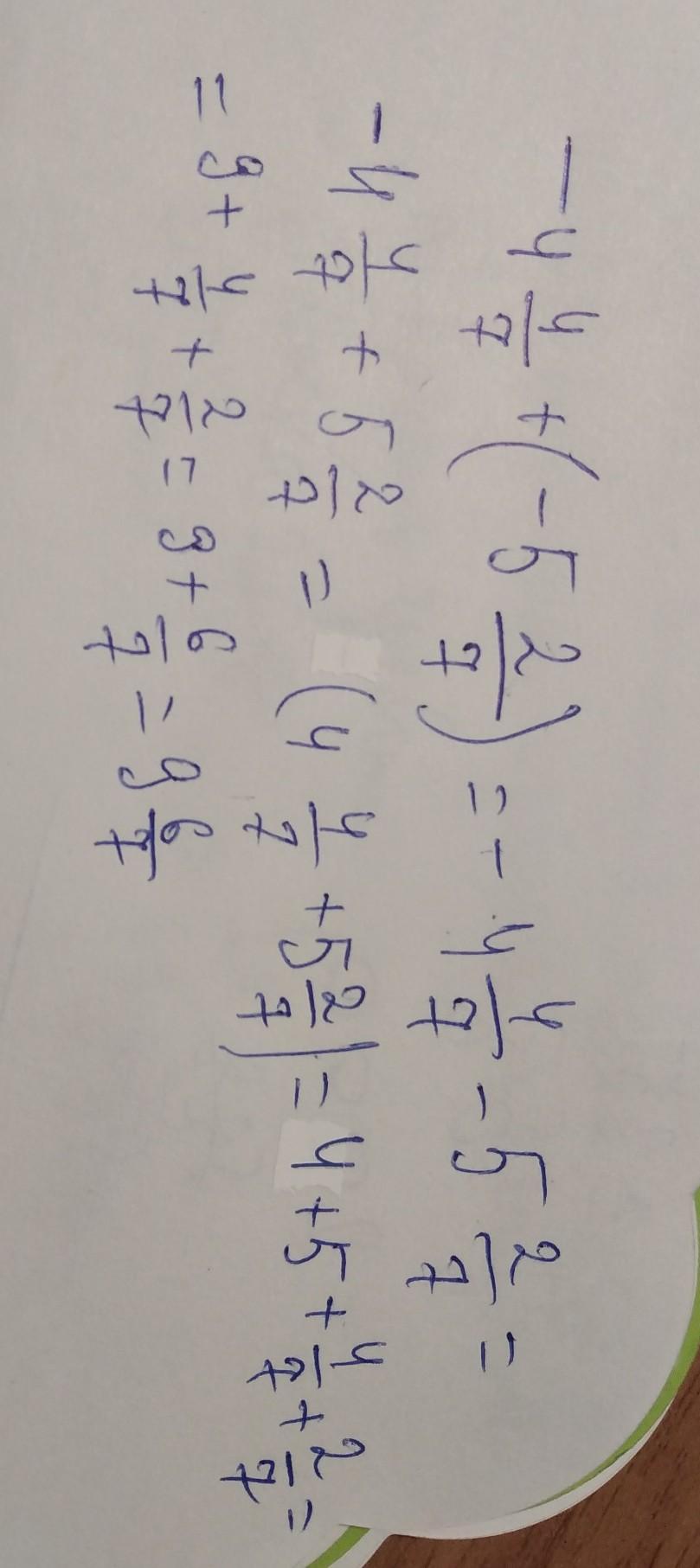 -4 4/7 + (-5 2/7) = -(4 4/7 + 5 2/7) = -9 6/7