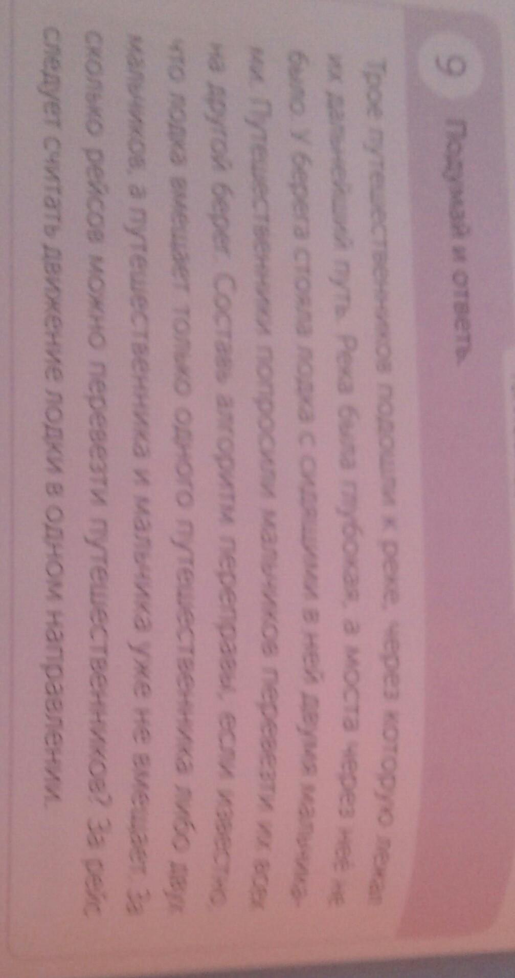 Сначала два мальчика, потом один возвращается, едет один путешественник, потом возвращается второй мальчик. Потом оба мальчика плывут на другой берег. И так несколько раз.