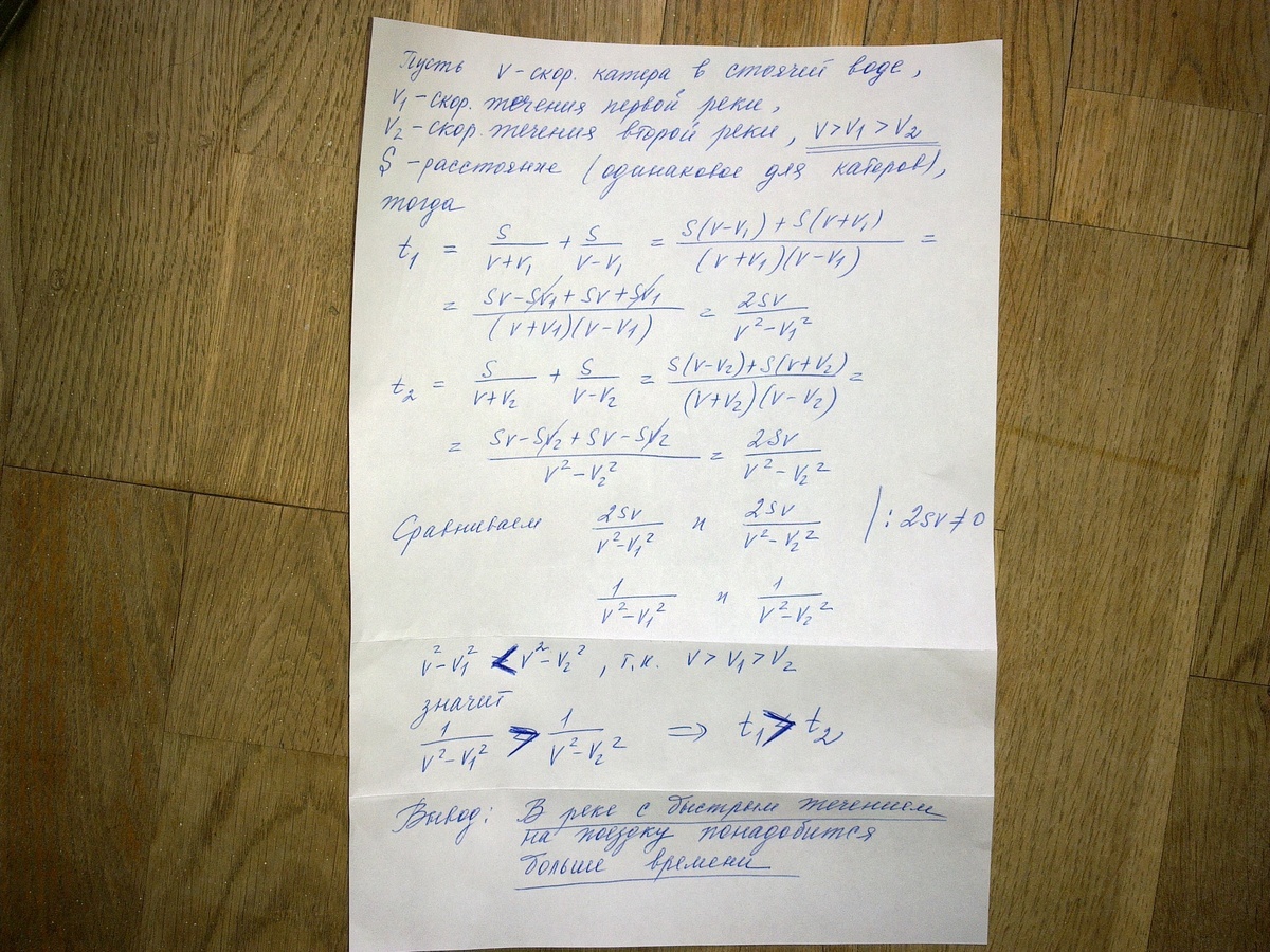 рекам одинаковое расстояние по течению и возвращаются обратно. В какой реке на