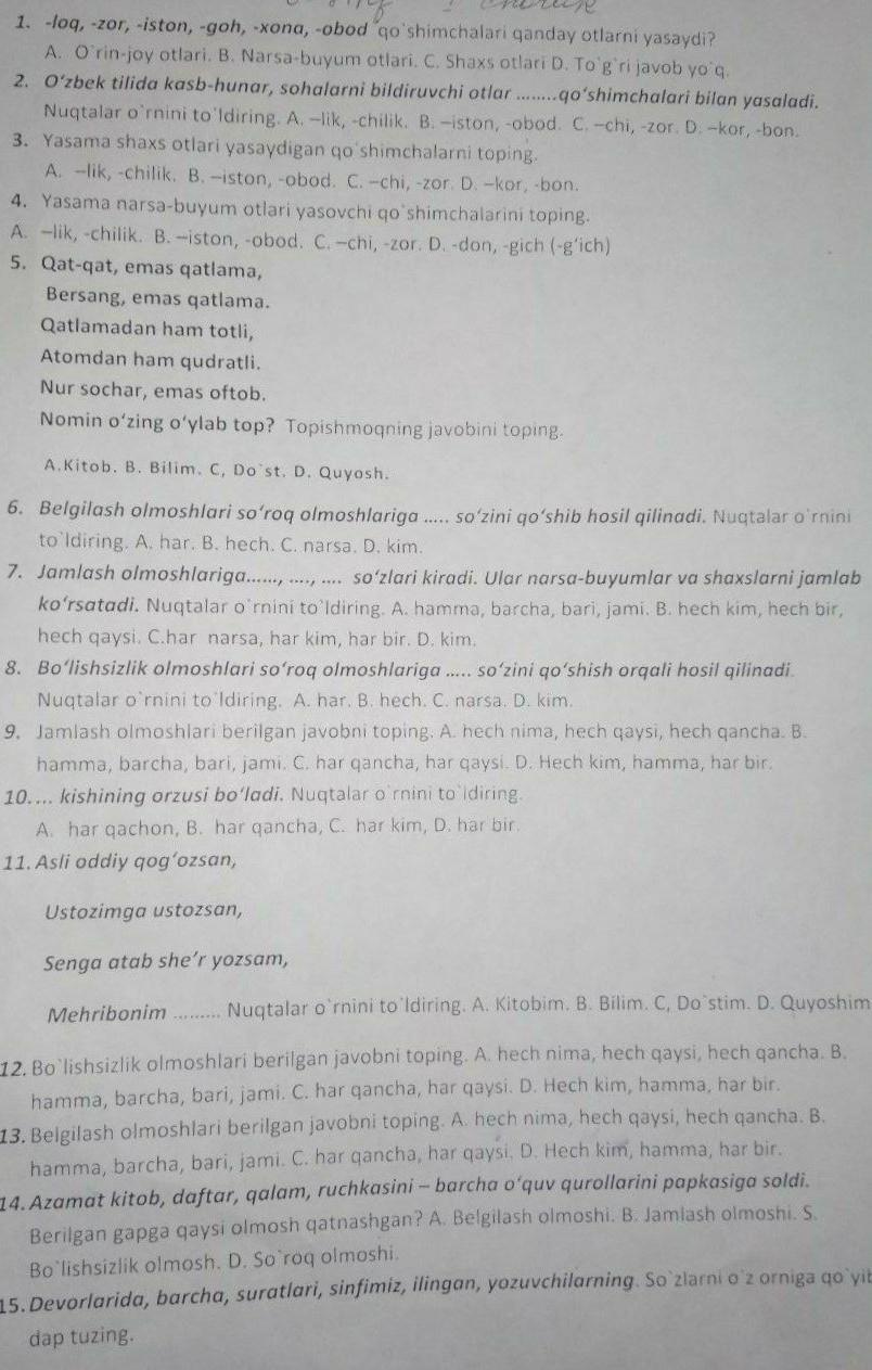 1a 2a 6a 7c 8b 9b 10d 11a 12a 13 b 14a