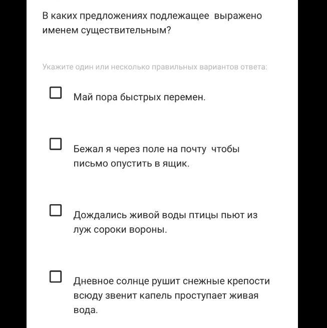 В каких предложениях подлежащее выражено именем существительным?