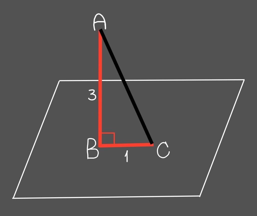До площини а проведено перпендикуляр АВ і похилу АС. Знайдіть довжину похилої, якщо АВ=3см, ВС=1см.