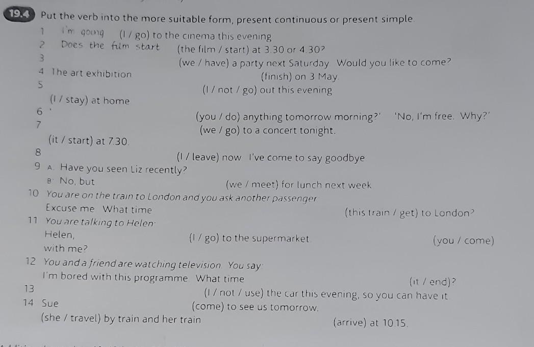- Present Continuous когда говорим о расписании движения поездов, автобусов и т.д, расписании занятий, начало и конец фильмов, театров и т.п.