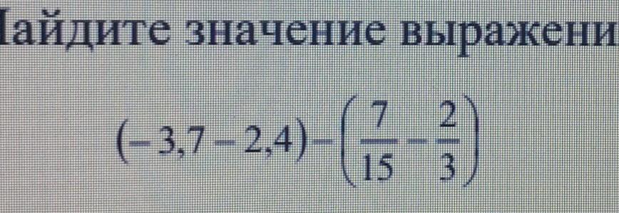 ( -3,7-2,4 ) - ( 7 / 15-2 / 3 ) = -6,1-7 / 15 + 10 / 15 = -6,1 + 3 / 15 = -6,1 + 1 / 5 = -6,1 + 0,2 = -5,9