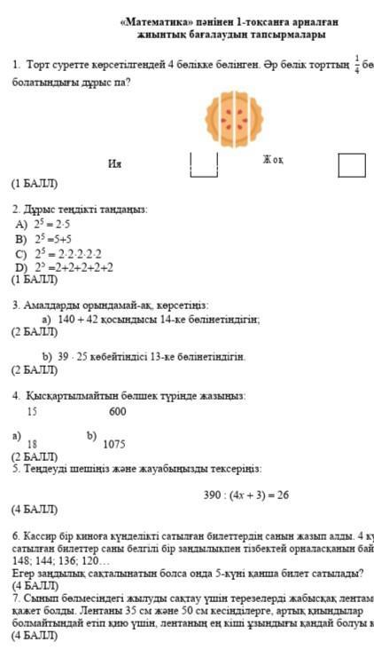 5.тендеу білетін шығарсыңдар)))