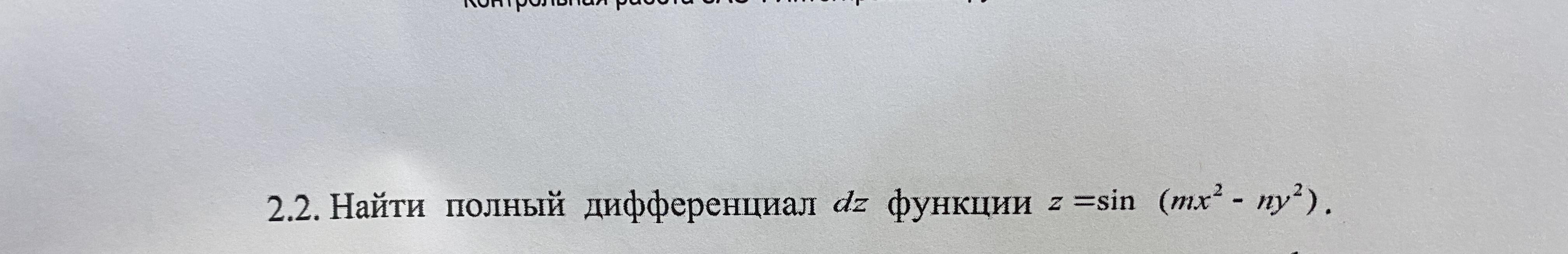 Помогите, пожалуйста, найти полный дифференциал dz функции z=sin (mx^2-ny^2)