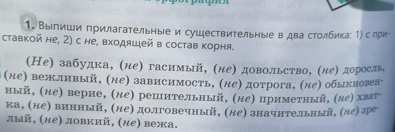 1. Выпиши прилагательные и существительные в два столбика: 1) с при-