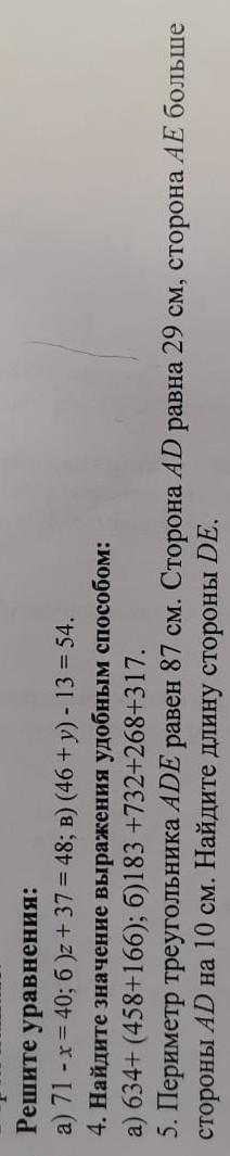 АД=29 см по условию, АЕ на 10 см больше АД, значит АЕ= 29+10=39 см,периметр 87 см
