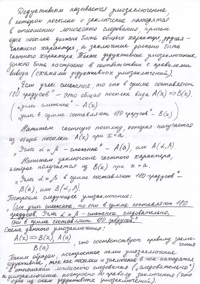 Закончите рассуждение, чтобы оно было дедуктивным. Запишите схему рассуждения