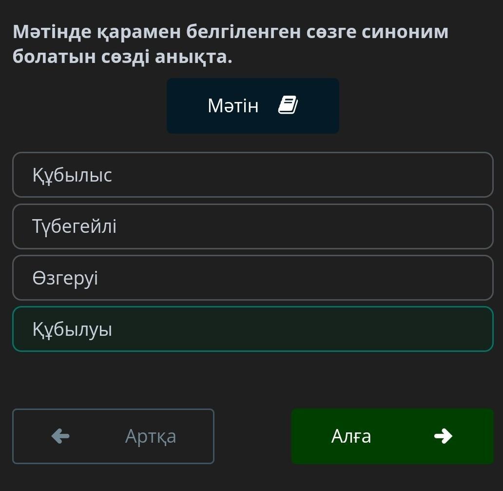 Мәтінде қарамен белгіленген сөзге синоним болатын сөзді анықта.
