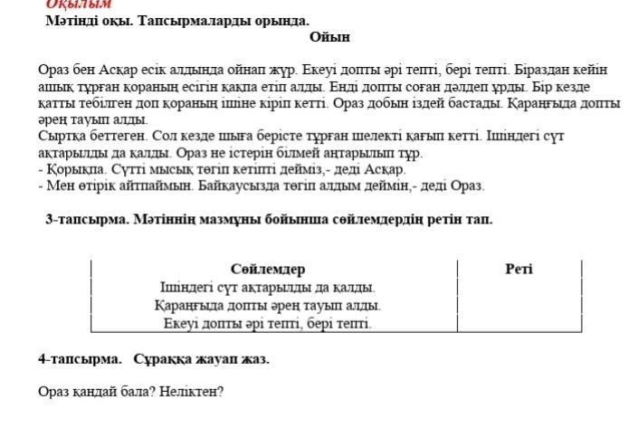Ораз жақсы бала.Өйткені ол ерінбей допты іздеп алып келді.Және ол шындықты айтуды шешті.
