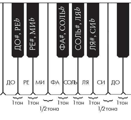 ( В приложении предоставлена клавиатура фортепиано с подписанными тоновыми расстояниями между звуков )