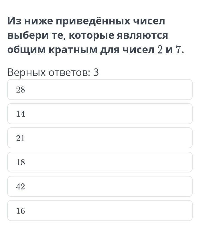 из ниже проведённых чисел выберите те , кторые явояются общим кратным для чисел 2и 7